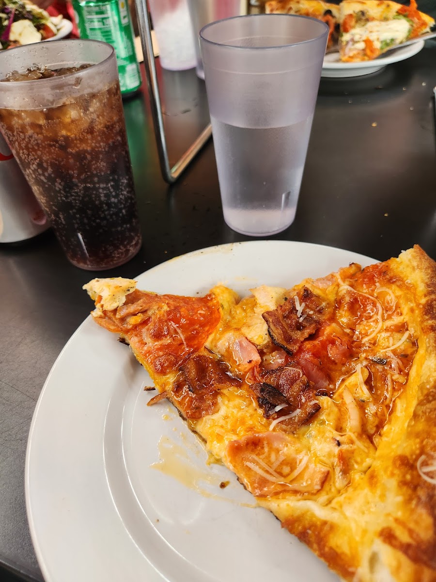 We received a recommendation to come here after a long day of driving and were very happy. They were SUPER packed but still kept service very pleasant and cheery. They have a huge selection of pizzas, salads and desserts. Everything was delicious and even though we did carry out, it stayed delicious. I'd highly recommend you stop by!